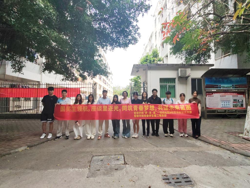 【本网讯】为激励管院学子在综合素质提升的征程中勇毅前行,帮助他们锚定奋斗目标,以国奖生为榜样汲取奋进力量,进而推动学院国家奖学金工作稳健良性开展。2025年3月27日,管理学院“梦・享・家”一站式学生社区联合社区功能型党支部、学生第二党支部于三水校区管理学院一教B202就业指导工作站举办“国奖生领航,座谈里逐光,同筑青春梦想,共谋未来蓝图”主题座谈会。座谈会由主要负责国奖业务的张永训老师主持,管理学院学工办副主任谢丽星老师、团委书记欧荣林老师以及各年级学生代表共同出席。