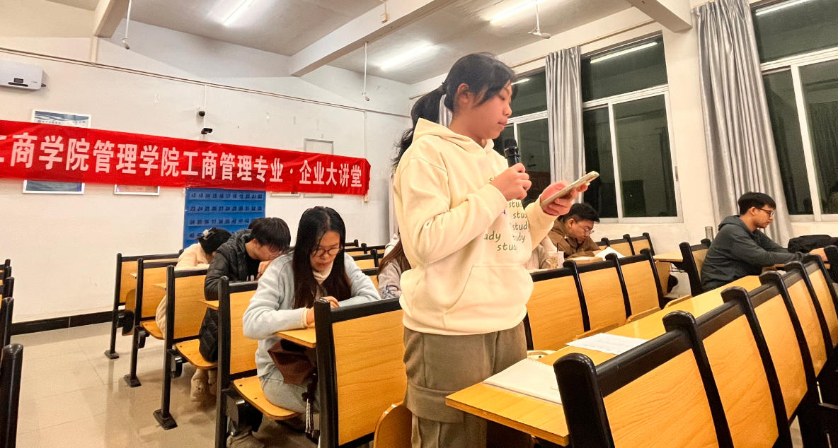 互动提问环节氛围热烈,工商管理专业学生结合专业学习与职业规划积极提问。有学生问道:“工商管理专业侧重管理理论,缺乏技术背景,未来想做技术型管理者,该如何弥补技术认知短板?”邹总结合自身跨岗位成长经历建议,可从拆解日常接触的智能硬件产品入手,先了解基础技术组件,再通过行业案例分析技术与业务的结合逻辑,逐步建立技术思维。另有学生关注“技术型管理者如何平衡团队中技术人员与非技术人员的协作节奏”,邹总以智能硬件项目管理经验回应,强调需用“技术+管理”双视角搭建沟通桥梁,比如用业务目标拆解技术任务,让不同背景成员明确共同方向,实用解答获现场认可。