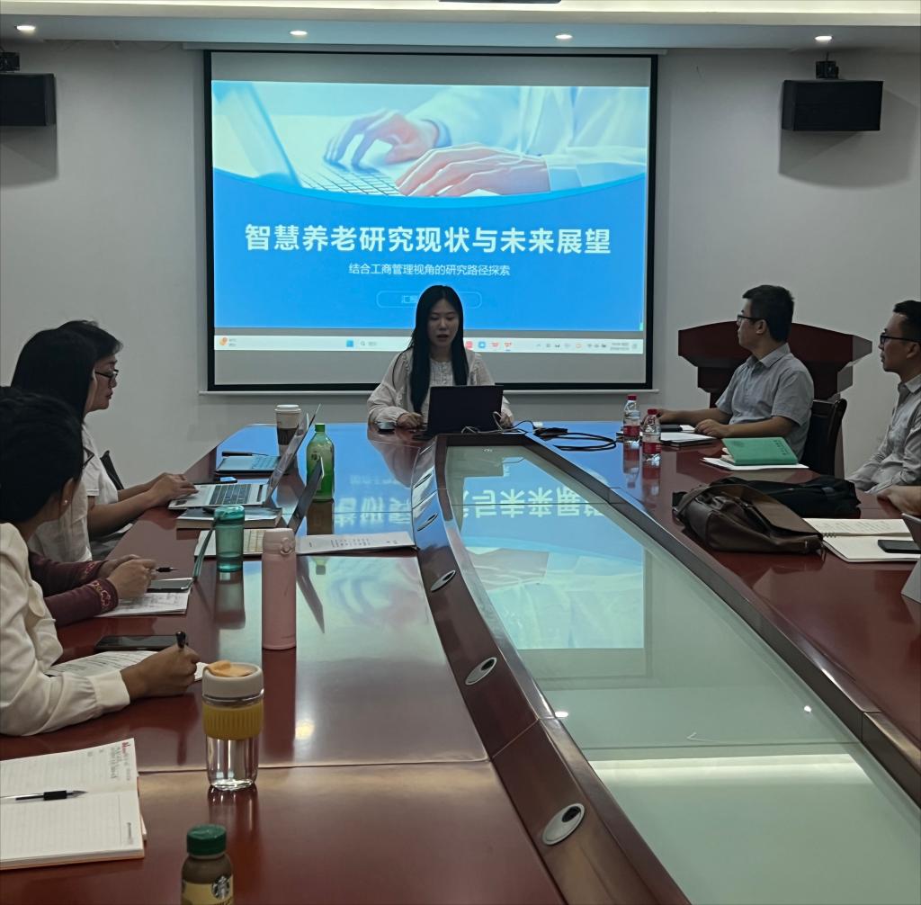 第二部分中,李宗洪博士则重点分享了智慧养老的研究内容。她详细讲述了智慧养老领域的发展现状和未来趋势,结合工商管理的视角进行研究路径的探讨。深入分析了智慧养老理论概述,发展历程、国内外发展的现状以及学术研究成果热点,研究方法的创新、未来发展方向以及研究空白的探讨。