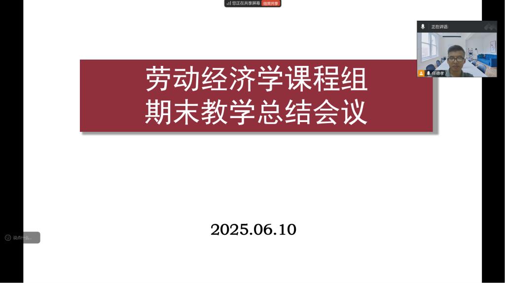 【本网讯】2025年6月10日晚,劳动经济学课程组通过线上会议总结本学期教学成果,部署期末复习工作,并研讨未来课程建设方向。会议由任德孝老师主持,宋锋华教授、张艳博士、宋阳博士参加。教学经验:理论与现实相结合是关键张艳博士认为,劳动经济学如同经济学课程一样,具有很强的现实性,讲授中需要结合实际案例进行分析,引起学生兴趣。比如在劳动力市场供给章节,单纯讲解工资弹性、替代效应等基础公式和模型容易引起学生的...