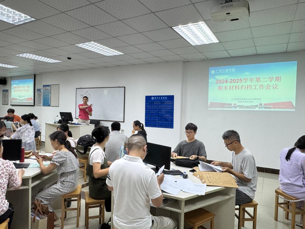 【本网讯】6月12日下午,人力资源管理教研室在实2-C305召开2024-2025学年第二学期期末材料归档工作会。会议由吴泽雄副主任主持,教研室全体教师参加会议。会上,吴泽雄副主任着重强调毕业论文材料归档工作的重要性,要求全体指导教师严格按学院通知规定执行。会议明确归档工作时间节点及关键日期,要求归档文件需关注材料清单、打印规范、签名与时间检查、内容审核重点等方面。针对17周专业实习与认知实习安排,为规范大学生实...
