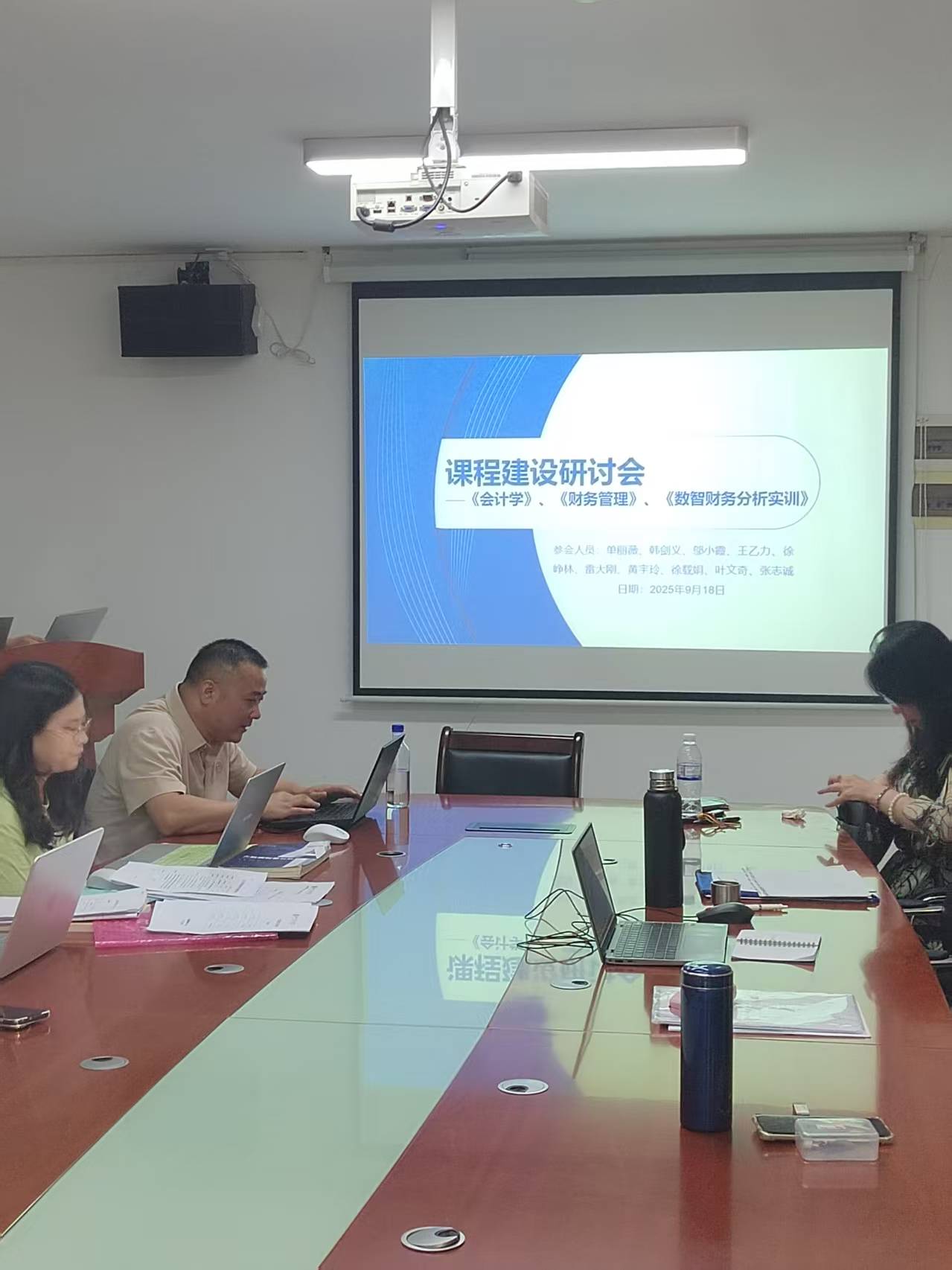 【本网讯】2025年9月18日下午,管理学院工商管理教研室在院部楼会议室召开课程建设专题研讨会议,围绕《会计学》《财务管理》《数智财务分析实训》三门核心课程的教学实施、课程协同与评价机制等内容进行了集中研讨。教研室主任单丽薇主持会议,副主任韩剑义出席;《会计学》课程组组长邬小霞及组内教师雷大刚、徐载娟、黄宇玲、王乙力,《财务管理》课程组组长徐峥林及组内教师叶文奇、张志诚,以及参与《数智财务分析实训》教...
