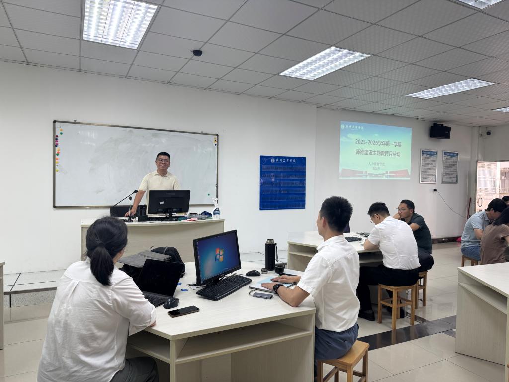 【本网讯】2025年10月9日下午2点,管理学院人力资源管理教研室在三水校区第二实验楼A305室召开了关于师德建设主题教育月活动的会议。会议由人力资源管理教研室副主任吴泽雄主持,人力资源管理教研室教师参加了此次会议。本次会议,旨在进一步增强全体教师立德树人的责任感和使命感,规范职业行为,明确师德底线,提升思想政治素质和职业道德水平。会议伊始,教研室副主任吴泽雄老师作了动员讲话。他首先传达了学院关于开展师德...
