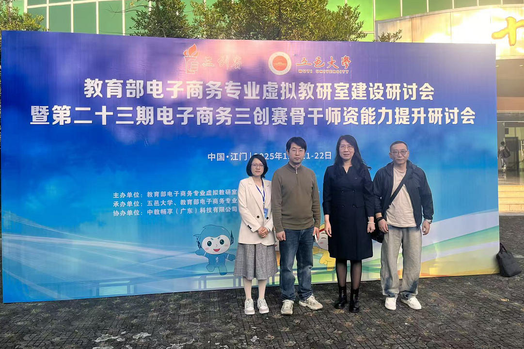 【本网讯】2025年12月20日至22日,由教育部电子商务专业虚拟教研室与全国大学生电子商务“创新、创意及创业”挑战赛竞赛组织委员会联合主办,五邑大学及教育部电子商务专业虚拟教研室在五邑大学基地承办,中教畅享(广东)科技有限公司协办的“教育部电子商务专业虚拟教研室建设研讨会暨第二十三期电子商务三创赛骨干师资能力提升研讨会”(简称“双研会”)在广东省江门市成功举办。管理学院教师单丽薇、王保生、安然及刘爱萍...