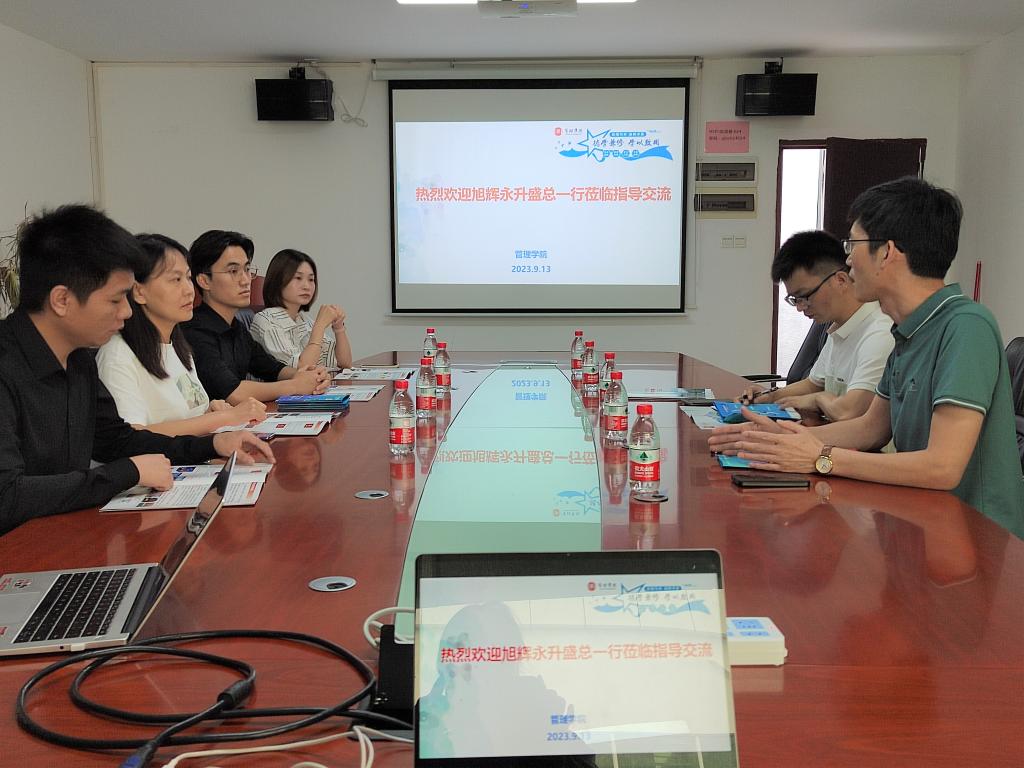 【本网讯】2023年9月13日,旭辉永升服务集团有限公司华南区域人力负责人盛洁、华南区域招聘负责人彭杨名、招聘经理李晓丹和高级招聘专员张文华一行四人莅临学院交流校企合作事务,学院副院长赵小锋和办公室主任陈海松进行了接待。会上,赵小锋副院长对公司到访学院表示热烈欢迎,对管理学院当前专业设置、学生数量、实习就业等情况进行介绍;旭辉永升服务集团有限公司华南区域人力负责人盛洁从公司发展、公司文化、招聘流程及岗...