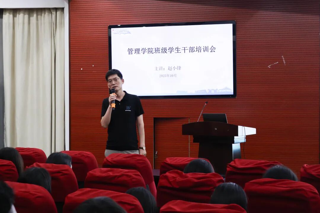 【本网讯】2025年10月16日,管理学院在三水校区办公楼322报告厅顺利召开2024级、2025级班级主要学生干部培训会。各班级班长、团支书、学习委员共同参与了此次培训。管理学院副院长赵小锋、学工办主任欧荣林出席会议。培训会上,赵小锋副院长首先以五个引人深思的问题——“你了解你的学校吗?”、“你了解你的学院吗?”、“你了解你的师兄、师姐?”、“你了解班委会、团支部吗?”、“你了解自己的岗位职责吗?”作为开场,...