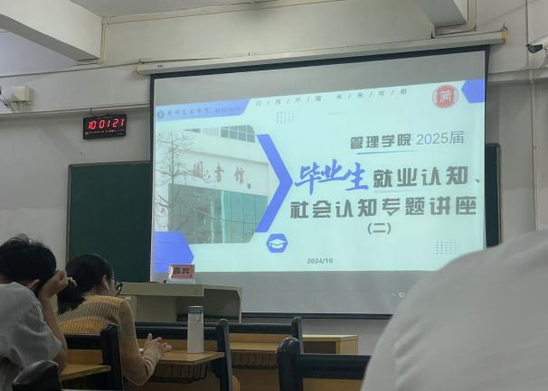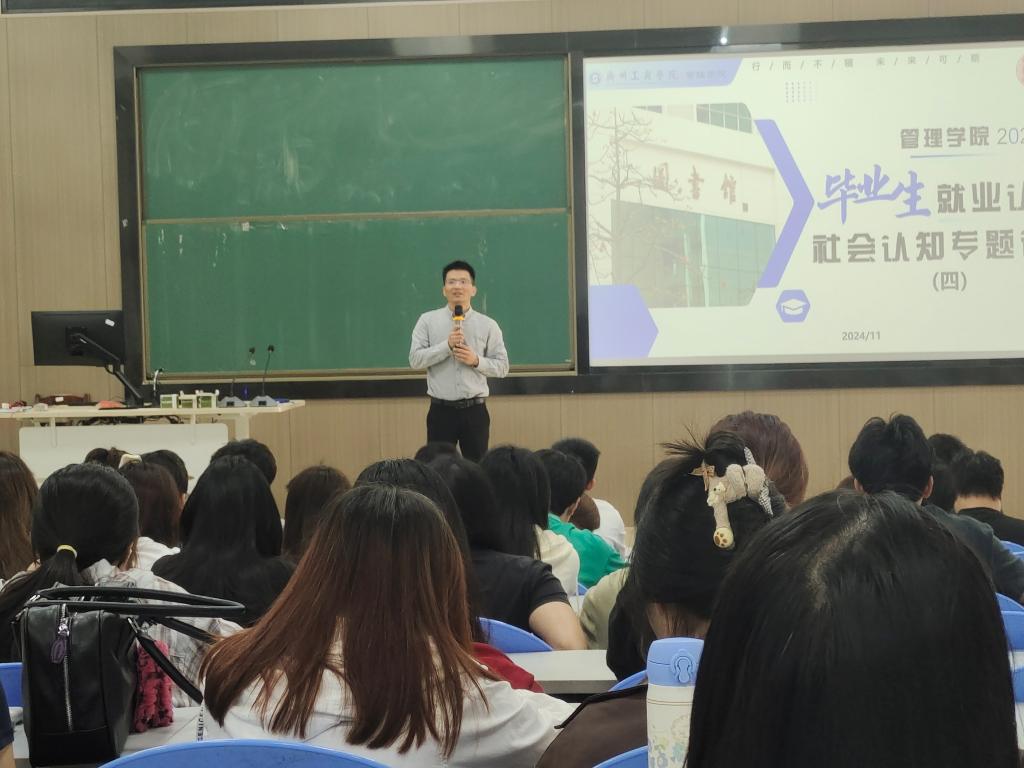 【本网讯】为了更好的帮助25届毕业生做好职业生涯规划和做好就业准备,2024年10月30日,管理学院在二实A205针对25届人力资源管理应届毕业生开展毕业生就业认知、社会认知专题讲座,本次讲座特意邀请了广东趣炫网络股份有限公司公共事业部总监彭超为毕业生开展以规划精彩人生,打造锦绣前程为主题的就业讲座,本次讲座由赵小锋副院长主持。(赵小锋副院长作开场致辞)讲座伊始,学院副院长赵小锋指出当前大学生就业形势十分严峻...