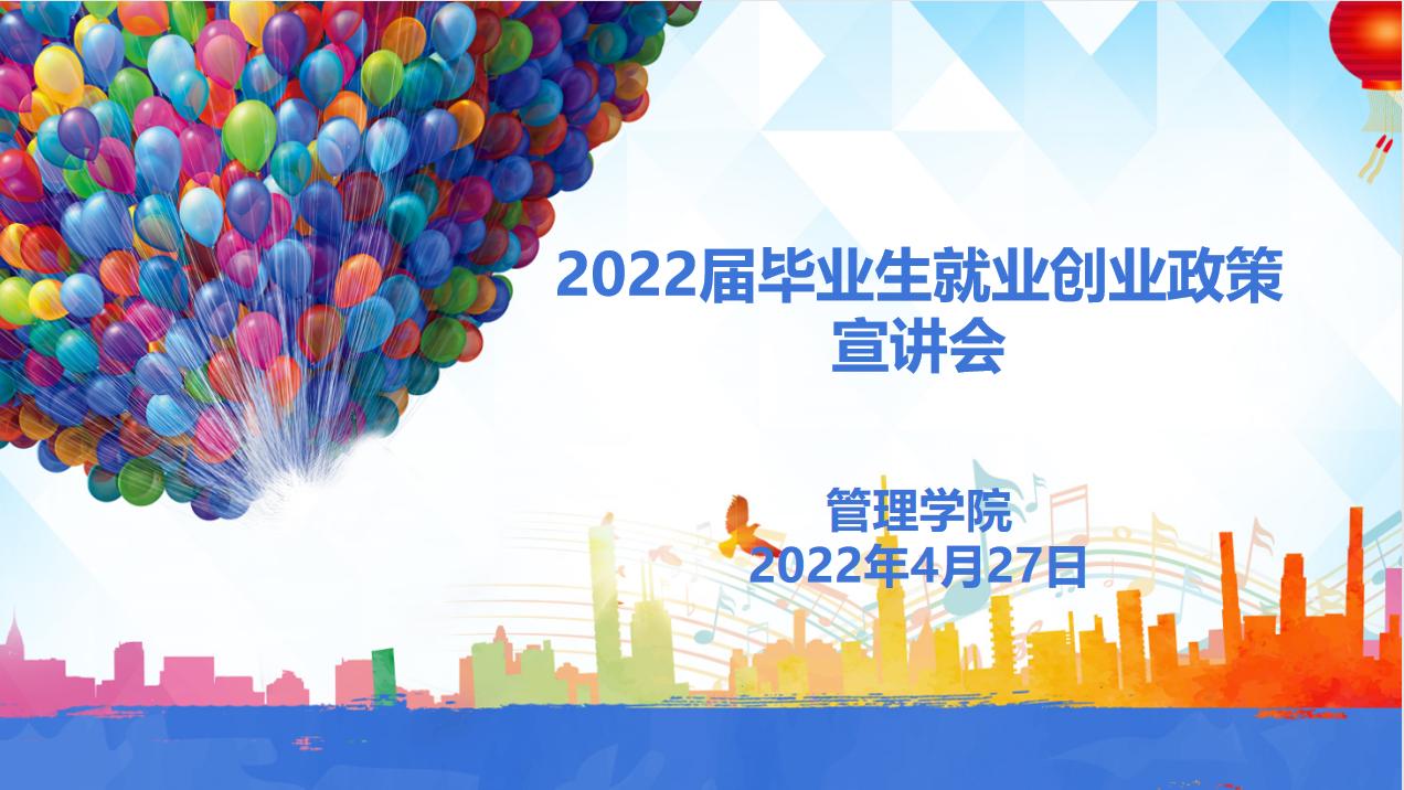 【本网讯】为了进一步加强同学们对当前大学生就业形势和就业政策的认识,增强就业观念,提高自身竞争能力,实现毕业就业的顺利衔接,管理学院2022年4月27日晚上20:00,通过腾讯会议召开就业创业政策宣讲会。会议由毕业班辅导员刘丹主持,分管学生工作副院长邹剑峰为学生作政策答疑。会议议程第一项,由刘丹老师向同学们介绍在疫情常态化就业背景下,教育部关于开展高校毕业生就业创业政策宣传的要求及意义。高校毕业生是国家的...
