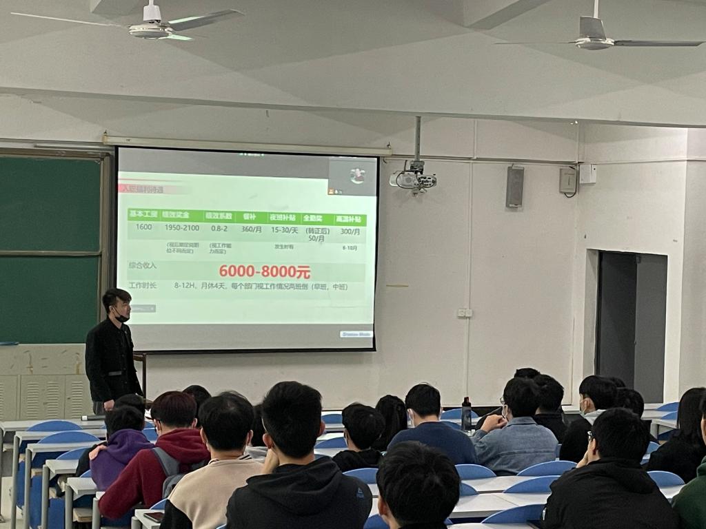 【本网讯】2022年11月22日,佛山市米袋信息咨询有限公司在第二教学大楼B301举行宣讲招聘会,2019级毕业生近50名学生参加会议。宣讲会上,优秀毕业生黄聪师兄介绍了当前金融行业的情况,围绕企业文化、职业发展、培训学习、薪酬与福利、岗位需求等方面进行详细的介绍。强调学习能力强、敢于突破自己、适应能力强且有勇气去挑战新事物的学弟学妹们,可以加入金融这个行业进行挑战。黄聪师兄还分享了个人发展的心得体会,勉励学弟...