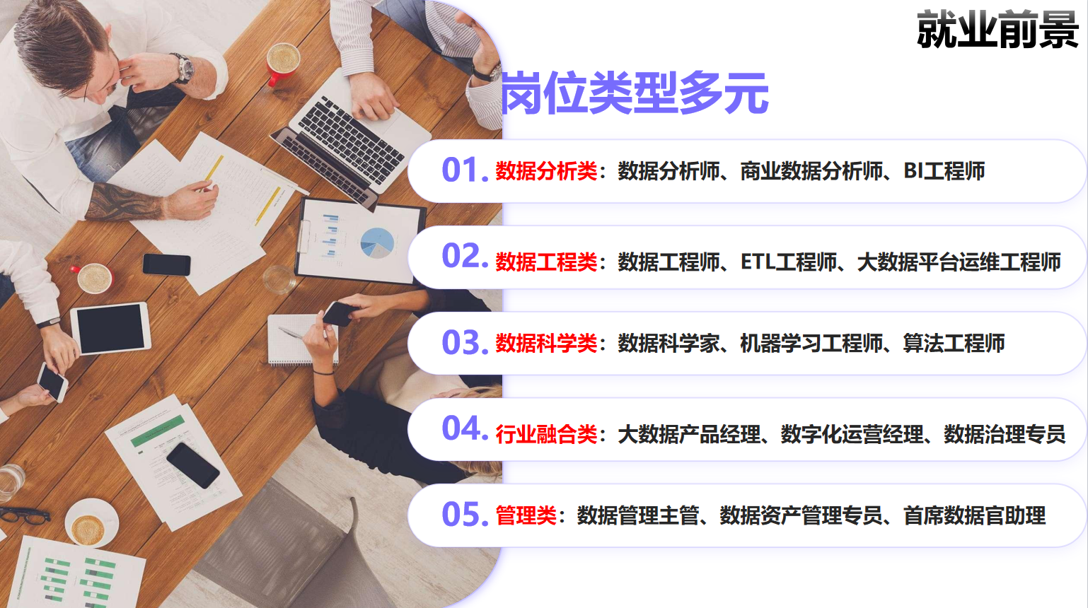 就业面向粤港澳大湾区数字经济核心领域,可在智能制造、电子商务、数字营销、金融科技、政府部门、企事业单位、数据服务机构从事数据治理、商业智能分析、数据产品运营、大数据开发、市场数据分析、数字化管理等岗位工作,就业口径宽、适配性强、职业发展空间广阔。