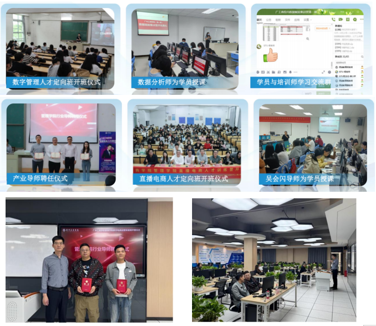 组建近三十人的高学历博士教学团队筑牢理论根基,同时深度链接广州八斗软件等企业引入资深行业导师。通过“学术领航+实战指导”的双师双能型师资矩阵,将产业最前沿的商业洞察与痛点分析直接带进课堂,精准破解传统教学脱离实际的痛点,提升人才培养含金量。