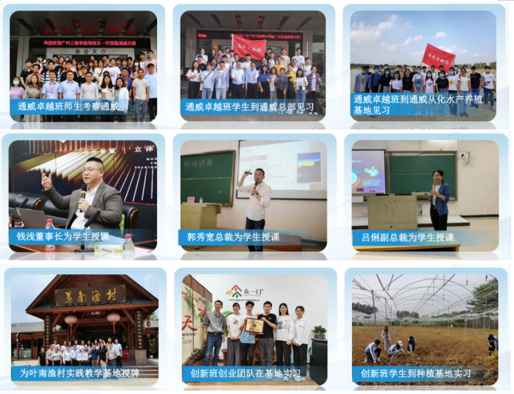 与广东通威饲料有限公司等11家企业签订校外实习、实践教学基地合作协议。每年可提供600个以上的顶岗实习岗位,亦可为教师顶岗实践之场所。专业与通威、叶南渔村、美美咨询等企业建立了深度的合作关系,联合成立了“通威卓越班”“兴宁叶南渔村创新创业实践班”和“商务咨询师产业班”。