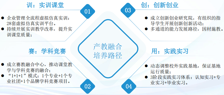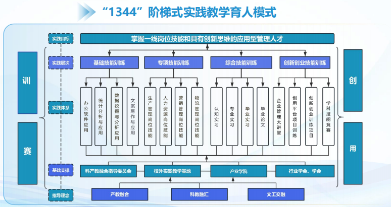 依托校地企深度协同,打造“见习、实习、创业”全链条实践生态。将企业管理虚拟仿真引入实训课堂,依托赛教融合中心与双创研究院,构建认知、专业、毕业三阶段递进式实习体系,让学生在真实商业场景中反复淬炼,实现从课堂理论学习到一线岗位实操的无缝平滑过渡。