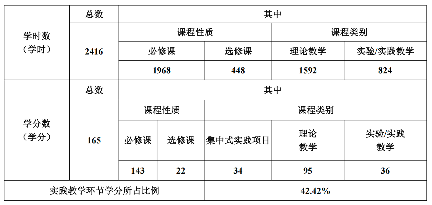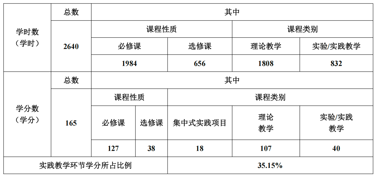 普本课程学时学分计划
