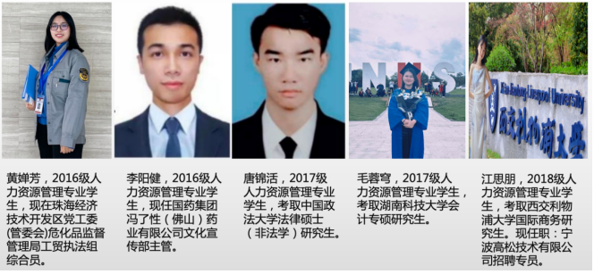 近5年,本专业学子在就业及考研升学方面取得了令人瞩目的优异成绩。在就业方面,不乏学子被政府机关、事业单位、国有企业及行业知名企业就职,如区党工委、保利、国药、华为等。在考研升学方面,众多同学成功被国内外知名高校录取,境内升学包括中国政法大学、深圳大学、南京理工大学、东北师范大学、上海海洋大学等“双一流”或国内知名院校,境外升学则覆盖悉尼大学、昆士兰大学、新南威尔士大学、诺丁汉大学、蒙纳士大学、澳门科技大学等世界名校。录取专业涵盖人力资源管理、工商管理、法律、社会工作、管理学、国际商务、项目管理、应用心理等多个领域,充分展现了ky开元学生扎实的学术功底、多元的发展方向和卓越的全球竞争力。