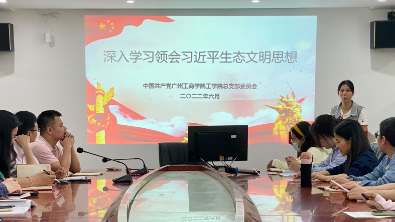 【本网讯】6月27日,工学院党总支理论学习中心组召开会议,深入学习领会习近平生态文明思想。工学院党总支纪检委员胡伟芳作领学发言,工学院全体党务干部参加学习会,学习会由党总支宣传委员张渊超主持。