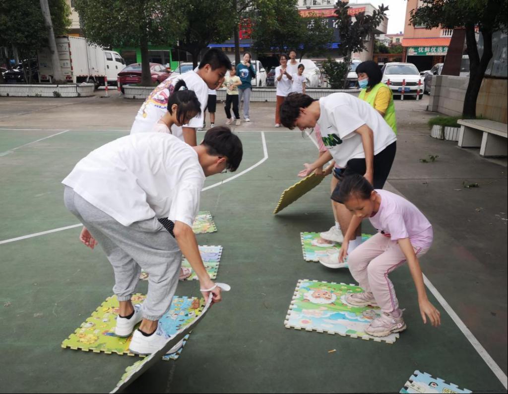 活动伊始,三水弘益社工回顾了工学院党群服务中心启晨志愿服务队2021年志愿服务的情况,通过图片的形式来回忆上一年的志愿服务经历,肯定并赞扬了志愿者们的工作。紧接着,三水弘益社的社工清姐对志愿者们提出了新的要求,希望志愿者们在以后的活动中继续发挥榜样作用,明确工作目标,保持志愿初心,凝聚团队力量,把志愿精神真正落实到志愿服务当中。三水弘益社负责人强调,志愿活动需主题突出、特色鲜明、形式多样,以新时代文明实践为载体,与党史学习教育相结合。活动第二项,志愿者团建拓展活动。这项活动由启晨志愿者们和大岗村的儿童们混合分组一起参与。此次团建拓展活动有“一块五毛”、“信任游戏”、“搭桥过河”、“传递乒乓球”四个游戏。活动项目集趣味性、娱乐性、协作性和竞争性于一身,既是力量的角逐,又是智慧的较量,同时也是对志愿者团队协作能力的考验。志愿者们积极踊跃参与,为各小组的胜利奋勇拼搏,增强了团队成员之间的默契和配合。在欢声笑语中本次团建拓展活动也迎来尾声。