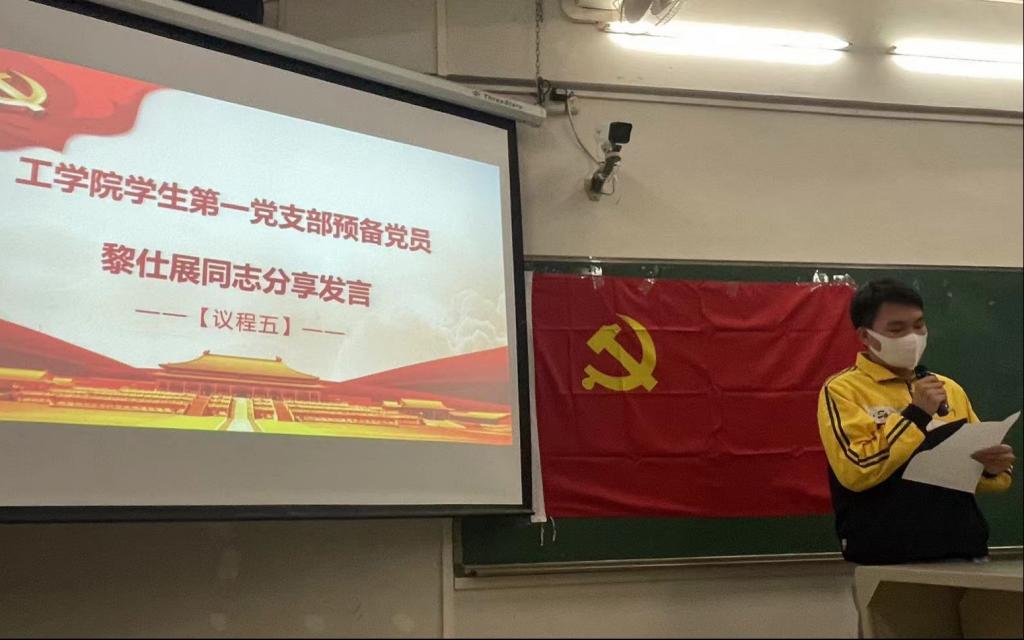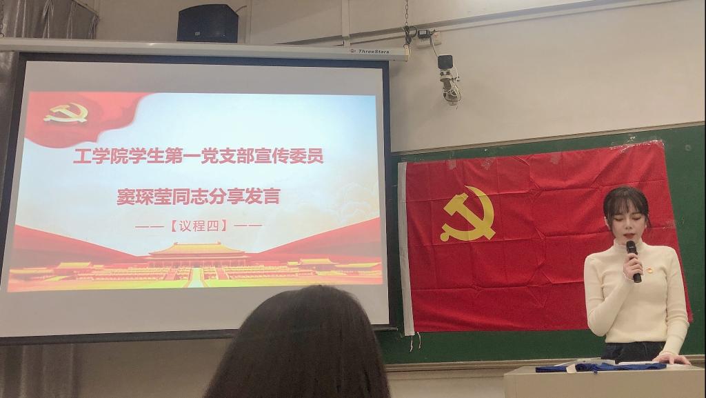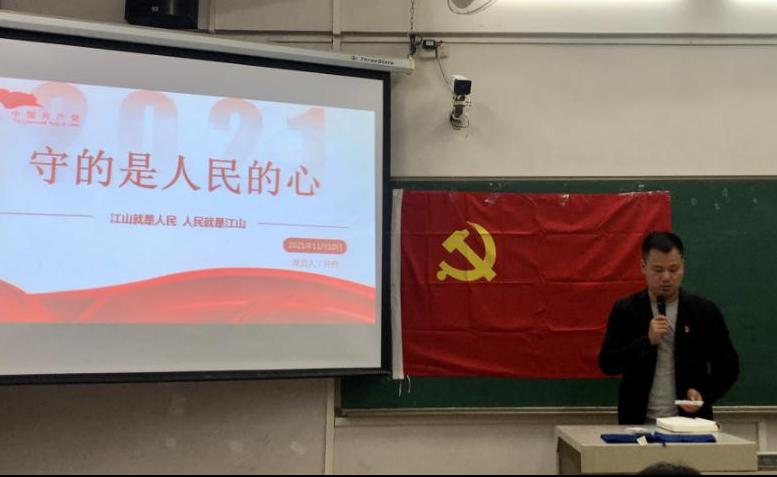 【本网讯】为深刻领悟百年大党不朽精神力量,坚定马克思主义信仰和社会主义、共产主义信念,贯彻落实党史学习教育的部署要求,2021年11月10日,工学院学生第一、第四党支部在第一教学楼A401开展《习近平新时代中国特色社会主义思想学习问答》学习分享会。出席本次会议的有工学院学生第一党支部书记钟伟同志、工学院学生第四党支部书记胡伟芳同志、支部委员、教师党员和学生党员。本次会议由工学院学生第一党支部宣传委员窦琛莹同志主持。
