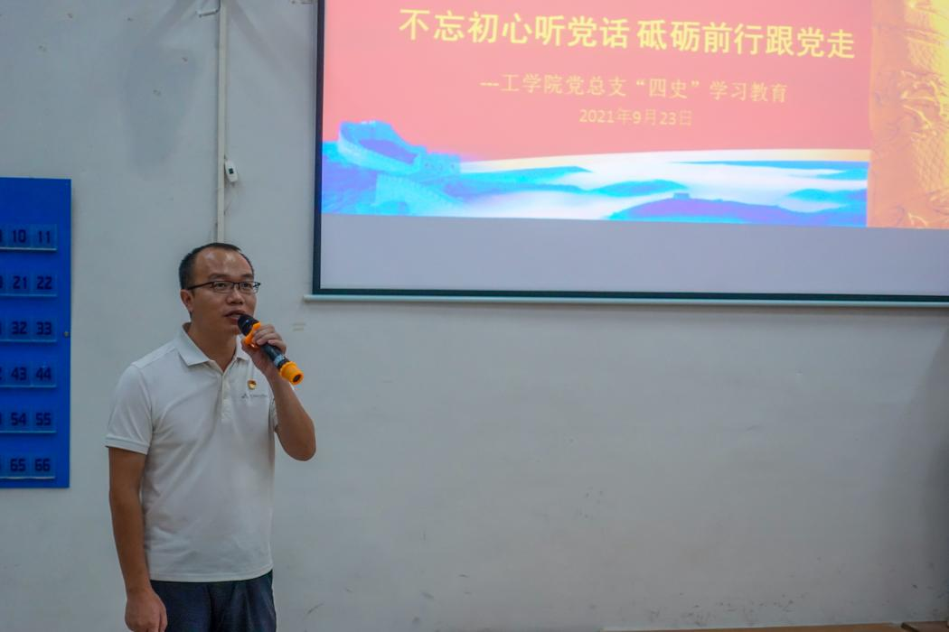 为深入学习习近平新时代中国特色社会主义思想,全面贯彻习近平总书记在党史学习教育动员大会中的讲话精神,学习贯彻习近平总书记“七一”重要讲话精神,加强2021级新生对“党史”、“新中国史”、“改革开放史”和“社会主义发展史”的学习,2021年9月23日,工学院党总支在第一教学楼C207开展党史学习教育,本次会议由工学院党总支副书记钟伟同志主持。