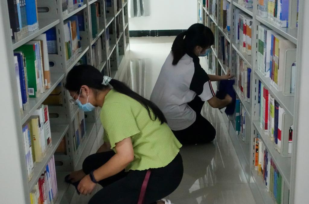 下午16:00,党员们准时到达集合地点,按照图书馆内划分好的劳动区域进行全方位清理。男生负责搬运铁架等图书馆重物;女生负责整理书籍、清理书架上的落灰、明显污渍以及隐藏垃圾。党员师生们不惧辛苦,全力投入劳动中,校园在大家的共同努力下变得越来越整洁美观。
