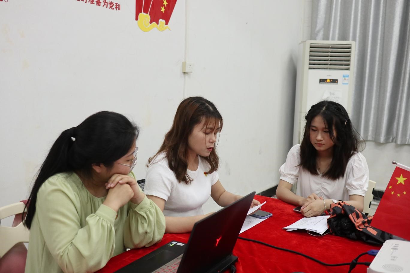 随后,入党介绍人向党组织介绍了他们的基本情况,与会16名党员同志对3名拟吸收预备党员进行评议并发表意见,并以无记名投票方式进行表决。由工学院学生第三党支部组织委员杨亚维宣布,苏靖琛、丘美琪、颜芷柔转为中共预备党员。
