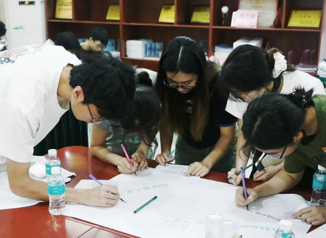 在主题读书活动环节,三水区读书协会会长岑蔓维围绕《长征》一书,结合学生社区建设实际,深入阐述了“坚韧、协作、创新”的长征精神对青年成长的重要启示,鼓励学生将长征精神融入社区实践。随后,全体人员一同观看了《长征》影视作品,通过沉浸式的学习体验,进一步感悟红色文化,深化了对理想信念的认知。为了让学生更好地将长征精神转化为社区建设的实际行动,活动组织了分组讨论和海报创作环节。学生们围绕“如何将长征精神融入日常生活”展开了热烈讨论。各小组还以长征元素为主题,自主创作了海报,用生动的图文展现了长征精神的丰富内涵。