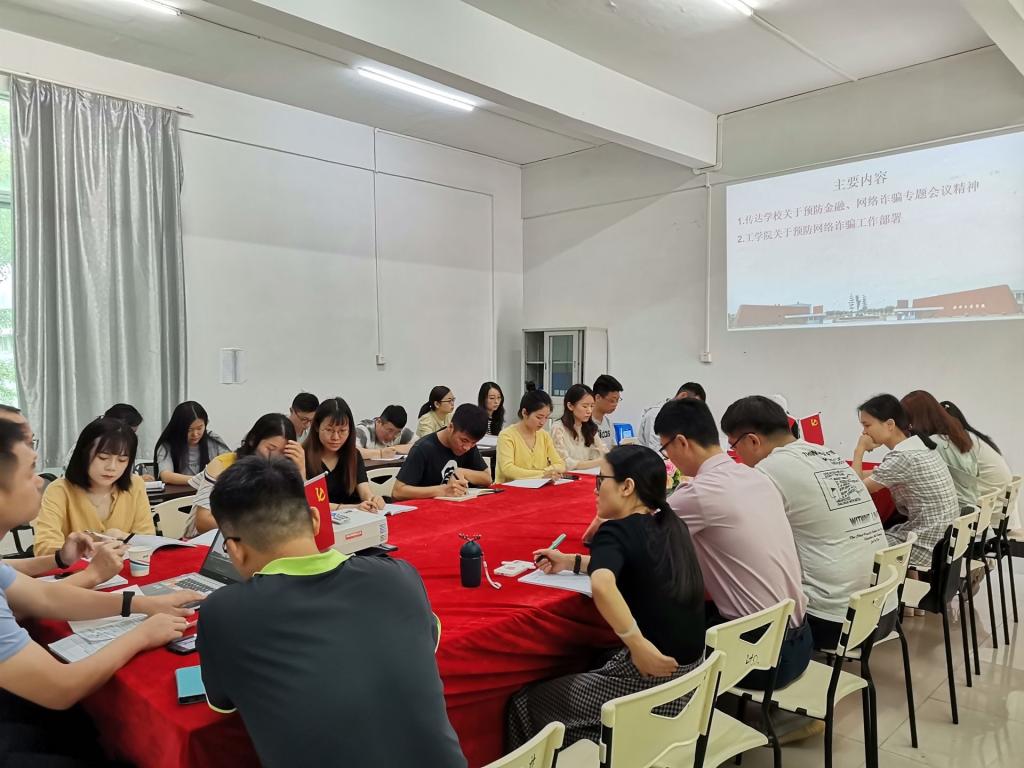 5月11日上午,我院在一教D206会议室召开防范电信诈骗专题会议。工学院副院长罗俊及全体辅导员参加会议,本次会议由学工办主任钟伟同志主持。