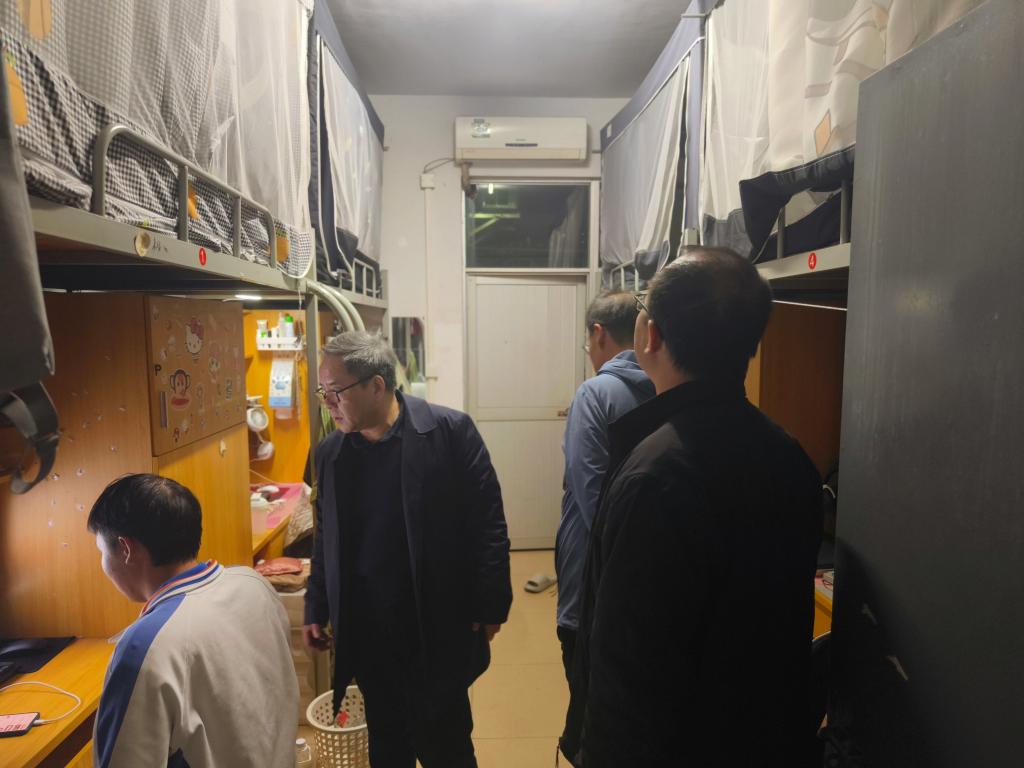 【本网讯】为进一步推进“平安校园”建设,增强学生安全意识,加强学生宿舍安全管理,消除学生宿舍安全隐患。12月23日晚,学院院长张永平教授、党委书记兼执行院长宋锋华教授、学院党委副书记、罗俊副教授带队下沉学生宿舍一线开展宿舍安全检查。学工办主任张渊超、副主任陈可昕和学生干部陪同开展检查。