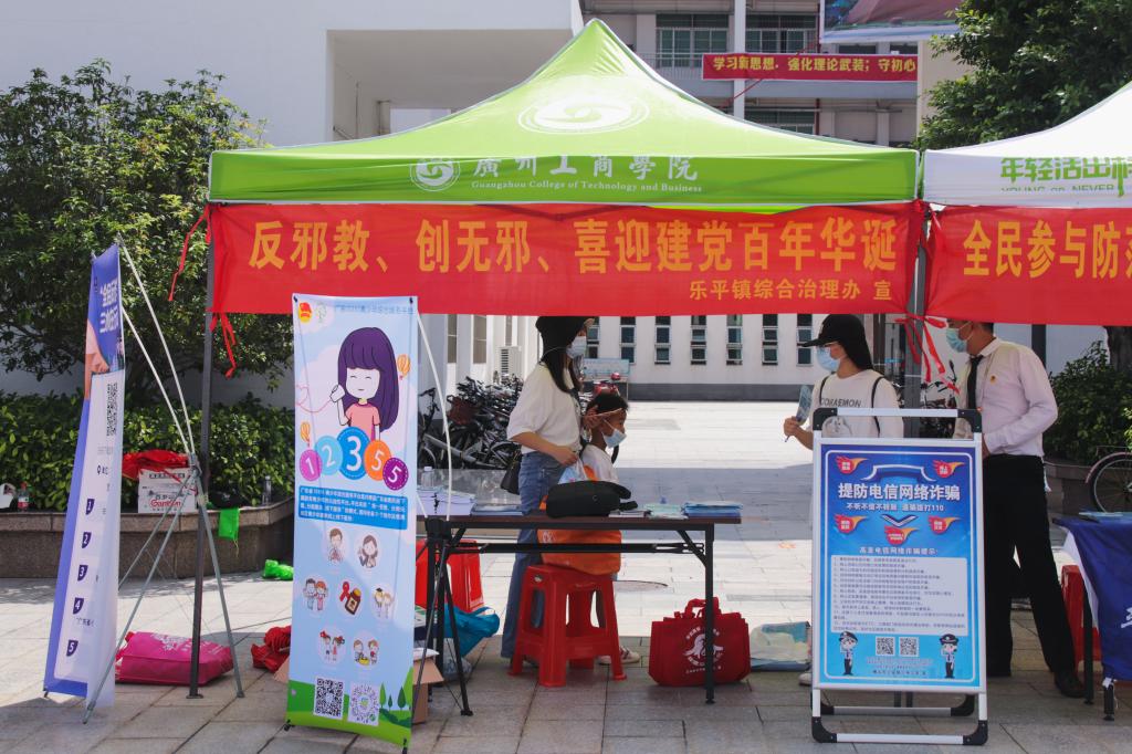 【本网讯】为创建更美好、更安全、更健康的大学校园,进一步提高广工商学子识别各类诈骗手段,辨别毒品的能力以及抵制邪教意识,ky开元集团官网工学院团委启晨志愿服务队于9月4日联合佛山市三水区乐平镇综合治理办在厚德广场开展了一场以“反诈”、“防毒”、“反邪教”为主题的宣传活动。