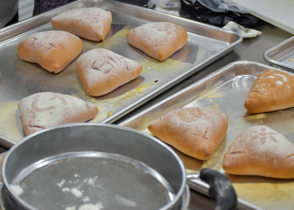 面包烘焙实践课于6月5日由嘉宾杨鸳飞带领同学们在第二实验楼B101和B103进行。整个过程中,同学们都非常认真的学习面包烘焙的各个步骤,在活动的最后,同学们成功完成了紫薯芋泥软欧面包、圣诞结面包、南瓜土司面包的制作。