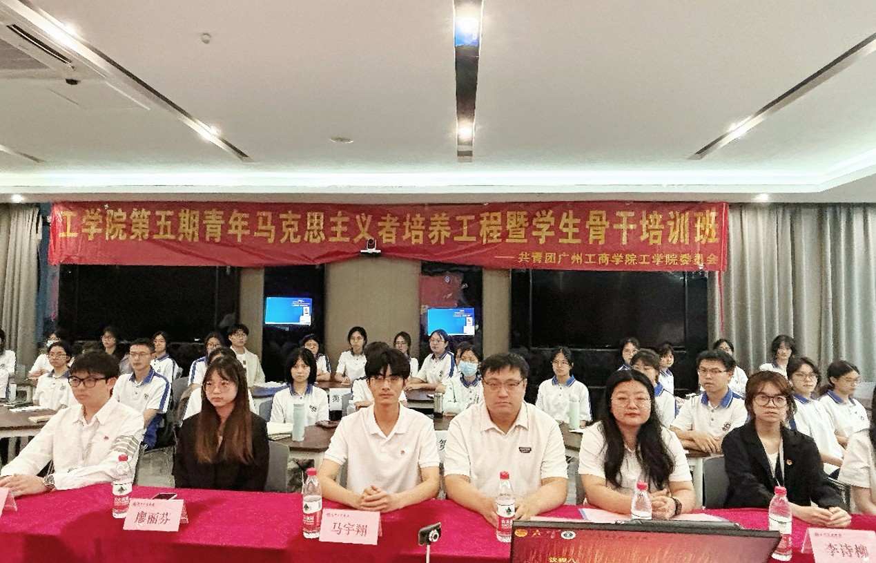 【本网讯】为提升青年学子的思想觉悟、理论素养、创新思维、实践本领与协作能力,为党培育和输送一批政治信仰坚定、家国情怀深厚、理论基础扎实、综合能力突出,能担重任、德行服众的青年骨干力量,5月13日晚上,我院于第一实验楼C201举行工学院第五期青年马克思主义者培养工程暨学生骨干培训班开班仪式。出席本次活动的嘉宾有:工学院学工办主任张渊超老师,工学院学工办副主任郭婷婷老师,工学院团委书记马宇翔老师,工学院团委书记处助理李诗柳,工学院学生会主席团成员廖丽芬、洪晓娟、徐子铭。