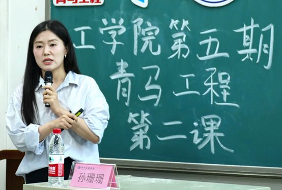 【本网讯】为提高广大青年的思想政治素质,持续筑牢信仰之基、勇担时代赋予的使命责任,5月15日晚,工学院第五期青马工程第二课《什么是马克思主义》在第一教学楼D204教室开讲,由学生第一党支部组织委员孙珊珊担任主讲人。
