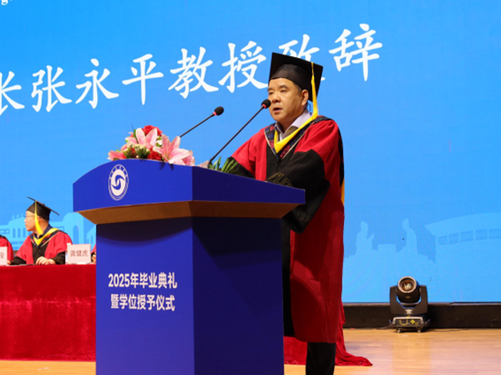 工学院院长张永平教授致辞,他代表工学院党政领导和全体师生向学院2025届毕业生表示热烈的祝贺,代表学院感谢毕业生们用智慧和实力所创造的辉煌成果。最后他祝愿各位毕业生们鹏程万里,万事如意。张院长的寄语,道出了对大家的祝福和期望。