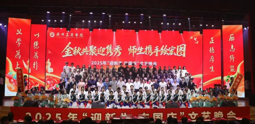 整场晚会现场气氛热烈,掌声不断,充分彰显观众对节目高度认可。在晚会的尾声,校领导与全体演职人员登台合影,定格美好瞬间,为晚会画上圆满句号。此次晚会的成功举办,丰富了校园文化生活,为师生提供展示与交流平台,更激励新生以昂扬姿态开启大学生活,书写精彩青春篇章。