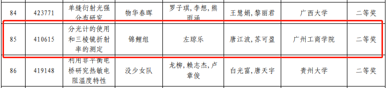 【本网讯】11月27日,2022年第八届全国大学生物理实验竞赛(创新)全国总决赛落下帷幕。由工学院唐江波老师、苏可盈老师指导的“锦鲤组”一路披荆斩棘,在决赛中荣获全国二等奖;由刘伟慈老师和程汉湘老师指导的“行知”、齐臣杰老师和毋福海老师指导的“无敌小分队”获得优秀奖。
