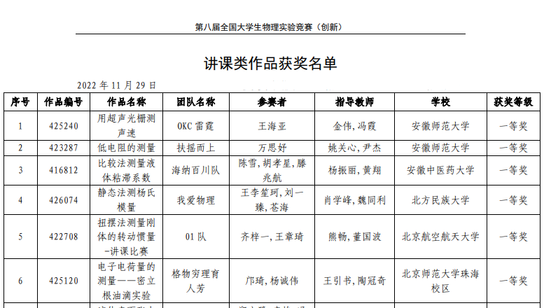 全国大学生物理实验竞赛由国家级实验教学示范中心联席会物理学科组、全国高等学校物理教学研究会、中国物理学会物理教学委员会主办,西安交通大学承办,是2022年教育部公布的全国普通高校大学生竞赛排行榜的唯一物理类竞赛,在全国范围内拥有广泛的影响力。本次大赛共吸引了包括清华大学、北京大学、复旦大学等众多一流高校在内的500余所高校的2000余支队伍参赛。