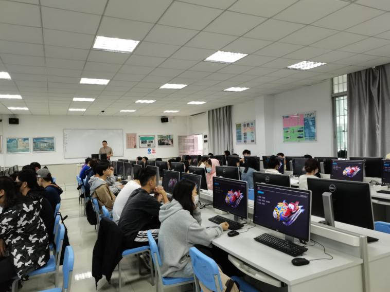 梁兵兵老师在课堂上结合当下三维动画市场现状,从市场需求出发,设计典型案例并将其融入实训内容中。本次实训课梁老师对课堂任务进行了梳理,然后对关键环节实操演示,学生在老师的辅导下认真完成实训任务。同时听课老师也根据课堂现场教学中存在的一些优点和不足,给出了自己的建议。