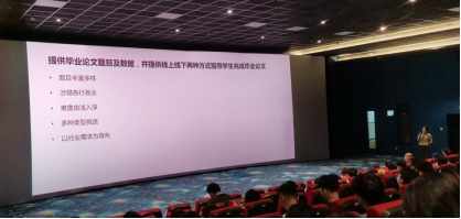 接着四家公司分别介绍自己的特色及毕设辅助按排,并且提供了各种类型的毕设项目,其中包括广东泰迪智能科技股份有限公司主技术为python和Spark或PySpark的毕设项目、广州粤嵌通信科技股份有限公司的嵌入式、前端、java、UNITY的毕设项目、广州狼码教育科技有限公司的前端技术为h5的网站或小程序和后端技术为java的毕设项目,华清远见教育集团于次日在学校进行选题。会议最后,四家公司均为19软件工程专业学生建立毕设辅助群,供学生提问并解答疑问。