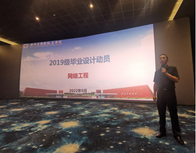 为让2019级网络工程学生深入了解毕业设计整体流程、毕设规章制度、时间安排、选题、开题、中期检查、答辩等一系列毕设相关工作流程和任务。工学院网络工程专业于2022年9月20日下午3点30分在学生活动中心开展了2019级网络工程毕业设计动员大会。