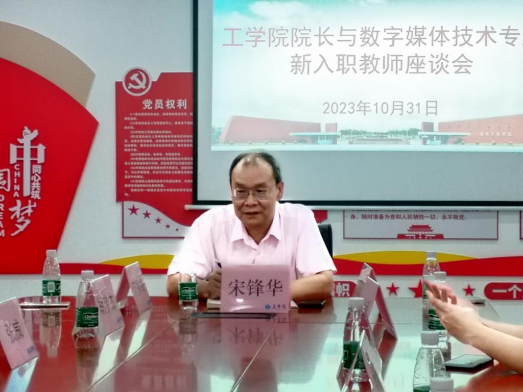 【本网讯】10月31日,“院领导与新入职教师面对面”座谈会在三水校区院部楼512会议室举行。工学院党委书记、院长宋锋华教授,与学院数字媒体技术专业16名新入职教师进行面对面座谈交流。座谈会由学院党委纪检委员、学院办公室主任周杰龙主持。