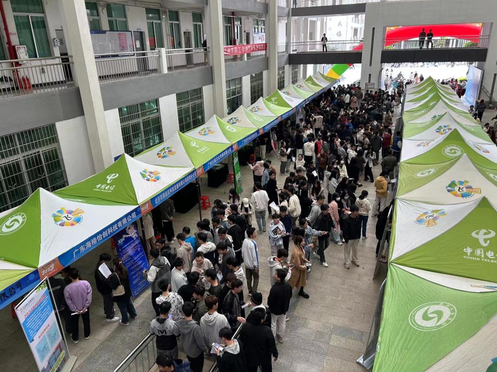 经过多方努力,本次招聘会应邀或主动参会单位有30余家,其中不乏广州粤嵌通信科技股份有限公司、广州东软睿道教育信息有限公司、广州大画文化传播有限公司、深圳华清远见教育集团、广东泰迪智能科技股份有限公司、广东安井食品有限公司、九毛九(广州)控股有限公司、广东海格怡创科技有限公司等知名企业,包含智能制造、生物医药、食品、新能源、人工智能、通信设备等多个行业,提供就业岗位500余个,招聘专业涵盖工学院2024届所有毕业生。据统计,此次招聘会现场共收到投递简历700余份,成果丰硕。