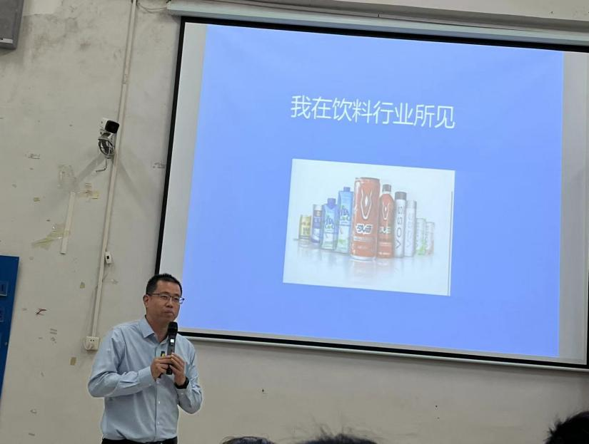 红牛维他命饮料有限公司的杨峻总经理分享了在饮料行业中的所见,先是介绍了个人经历,也借此鼓励同学们多培养一些爱好,接下来,我们使用了国家标准《饮料通则》以及一些常见饮料品牌的发展史介绍了饮料行业的现状。在职场分享部分,杨总先是选择了学生比较关注的问题,如毕业后是继续读研抑或是考公、进企业?发表了个人的见解,并分享了上班第一周的故事。也通过一些自身经历告诫同学们通过一些方法管理自我;可以通过考证不断升级;进入圈子中,不断晋升,建立良好的人际关系。