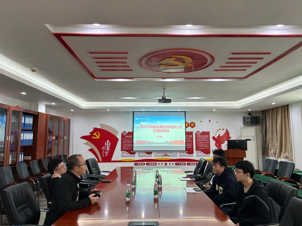 【本网讯】3月21日惠州市南钢金属压延有限公司招聘主管携人事部门工作人员来我院召开2024届毕业生校园招聘宣讲会,工学院2024届同学线上线下同步参加了此次宣讲会。