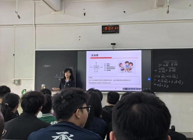 数字电子技术是当前科技领域的重要组成部分,其在社会生活、工业制造、通信网络和计算机科学等方面发挥着关键的作用。丁南老师具备扎实的数字电子技术知识和丰富的实践经验,在观摩课上能够用简洁明了的语言和例子来解释复杂的数字电子技术概念,使学生能够易于理解和运用。同时还积极与学生互动,提出一些问题,来鼓励学生进行思考和讨论,同时及时回答学生的疑问,解决他们在学习过程中遇到的问题,这很好地激发了学生对数字电子技术的兴趣和求知欲望,整个课堂学习氛围十分融洽。