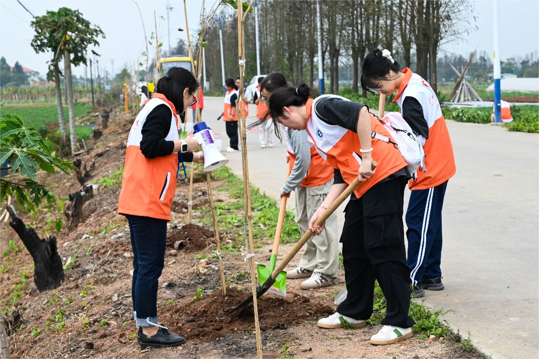 在此次“绿美广东,青年先行”植树活动中,学院师生代表实践了“百千万工程”,与芦苞镇通力合作,为助推三水区地方经济发展添砖加瓦,学子们以实际行动践行“绿美广东”生态建设,深刻理解人与自然和谐共生的中国式现代化,积极响应新时代“绿水青山就是金山银山”的号召。