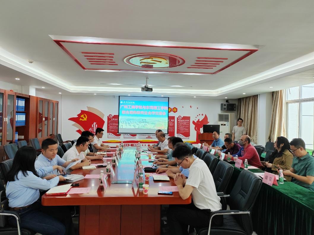 接着,廖文波副院长亦从东莞理工学院的学科框架、研究生培养、硕点建设等方面进行介绍。廖文波副院长介绍完后,双方进入了座谈交流环节。现场氛围轻松,双方就“合作目的”、“合作内容”、“培养模式”、“权力和义务”等方面进行座谈交流,达成一致意见