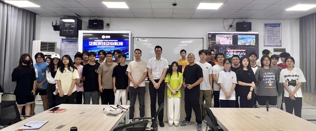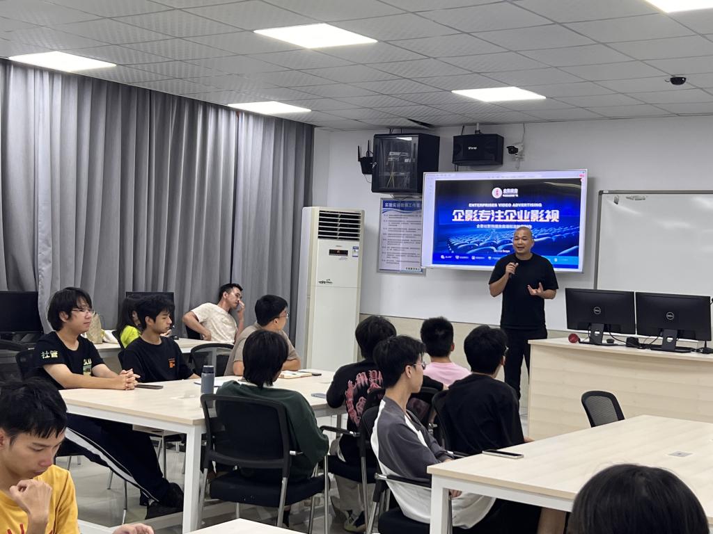 【本网讯】2024年5月30号14:30——16:00,工学院数字媒体技术教研室举办一场主题为“商业影片制作全流程分享”的企业讲座,本次讲座在第一实验楼D202成功举办,旨在为数字媒体创意班B1班全体同学提供一个深入了解商业影片制作过程的机会。教研室邀请了企影广告有限公司项目团队作为主讲嘉宾,包括项目总监、导演陈增海老师,执行总监钟斌老师,以及创意总监傅卓敏老师,此外出席讲座的还有工学院副院长胡垂立教授。