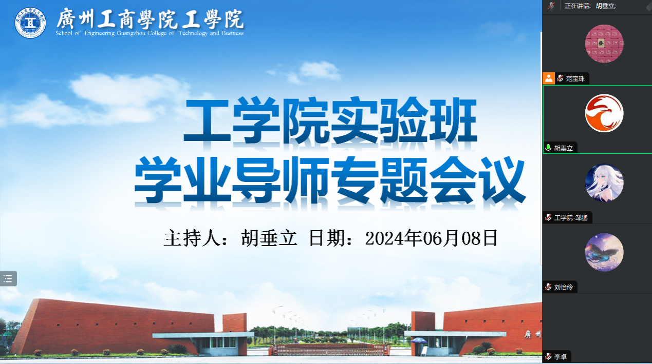 【本网讯】2024年6月8日晚上20点,工学院成功召开了实验班学业导师专题会议。会上,副院长胡垂立围绕实验班运营策略、学业导师工作模式、微课程实施方案等多个方面进行了深入讨论,共同探讨了如何通过个性化教育培养具有实践能力、创新思维和团队协作能力的新时代人才。