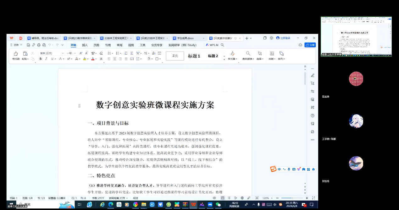 特别值得关注的是,会议还详细展示了数字创意实验班的微课程实施方案。该方案详细介绍了微课程的整体规划、内容设计、制作流程以及实施计划,并强调了微课程在数字创意领域的专业性和创新性。通过微课程的实施,实验班能够开展项目式学习、团队协作等实践活动,提高学生的专业技能和创新能力。