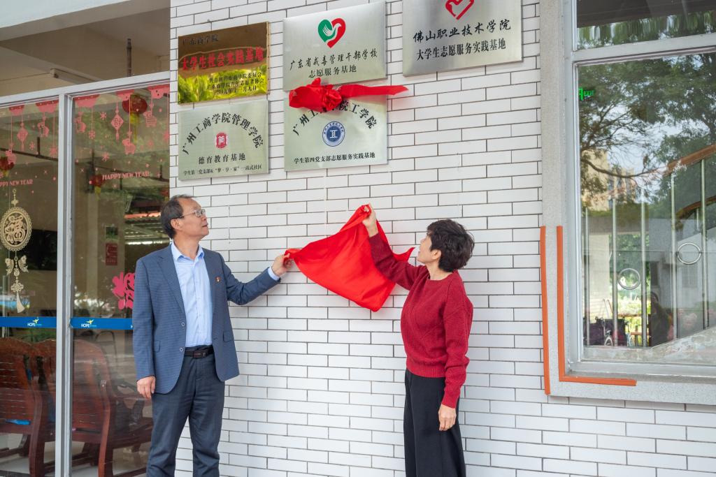【本网讯】11月27日,我院学生第四党支部与乐平敬老院在三水区乐平敬老院顺利举行志愿服务实践基地共建揭牌仪式。此次活动旨在加强工学院学生第四党支部与乐平敬老院的交流与合作,共同为老年人提供更加优质的服务和关怀。参加本次揭牌仪式的有乐平敬老院冼桂莲院长、工学院党委书记兼执行院长宋锋华教授、敬老院唐和英副院长和学生第四党支部师生党员。